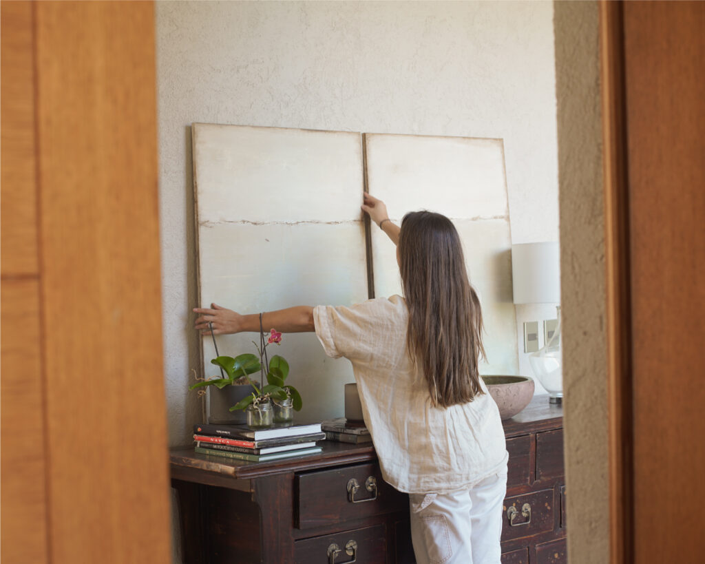 Through her painting, Antonia Prida invites us to embark on an artistic journey interweaving rustic and minimalist elements, nature, visual peace, and a palette of earthy colors. Her artistic focus centers on simplicity and the elimination of superfluous elements, allowing subtle details and natural forms to come to life in her compositions. Nature acts as her main source of inspiration, and through careful observation and a thorough study of landscapes and natural elements, Antonia manages to capture the essence and serenity of the beauty that lies within them. Her carefully applied brushstrokes seek to reflect a visual experience in line with her earthy color palette, composed of warm and natural tones.